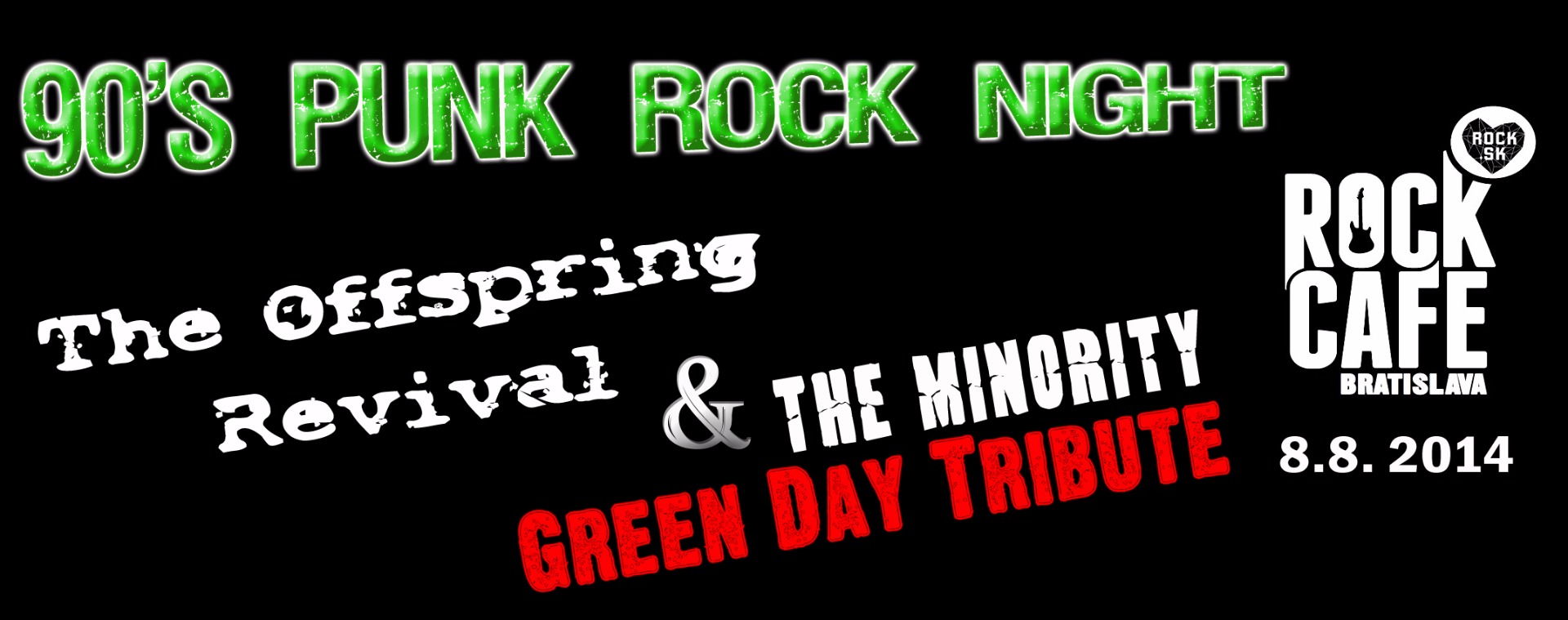 Piatkový večer 8. augusta bude v rámci podujatia 90´s Punk Rock Night v bratislavskom klube Rock Cafe patriť dvom výnimočným kapelám The Offspring a Green Day. Pôjde naozaj o špecifické spojenie týchto dvoch najslávnejších punkových kapiel 90-tych rokov - v jeden večer, a na jednom pódiu. Ako prví sa predstavia The Minority (Green Day Tribute) zo svojim setom tých najznámejších a ich najobľúbenejších piesní od už legendárnej kapely Green Day. Nebudú chýbať skladby ako Basket Case, American Idiot, When I come around, Boulevard of Broken Dreams a veľa ďalších. Za nimi preberie štafetu zoskupenie The Offspring Revival a odpáli ich viac ako 1,5 hodinový koncert, ktorý bude obsahovať prierez celou tvorbou The Offspring od ich najstarších albumov až po ich súčasne najnovší Days Go By. Samozrejme odznejú všetky najznámejšie veci ako Self Esteem, Come Out And Play, All I Want a veľa ďalších.