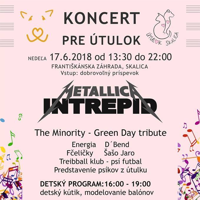 Naše prvé vystúpenie zo série letných koncertov bude v túto nedeľu 17. júna na podujatí Koncert pre útulok 2018 v Skalici. Našu show venujeme predovšetkým našim štvornohým priateľom z OZ Útulok Skalica a veríme, že sa stretneme v hojnom počte. Začíname o 19:00!