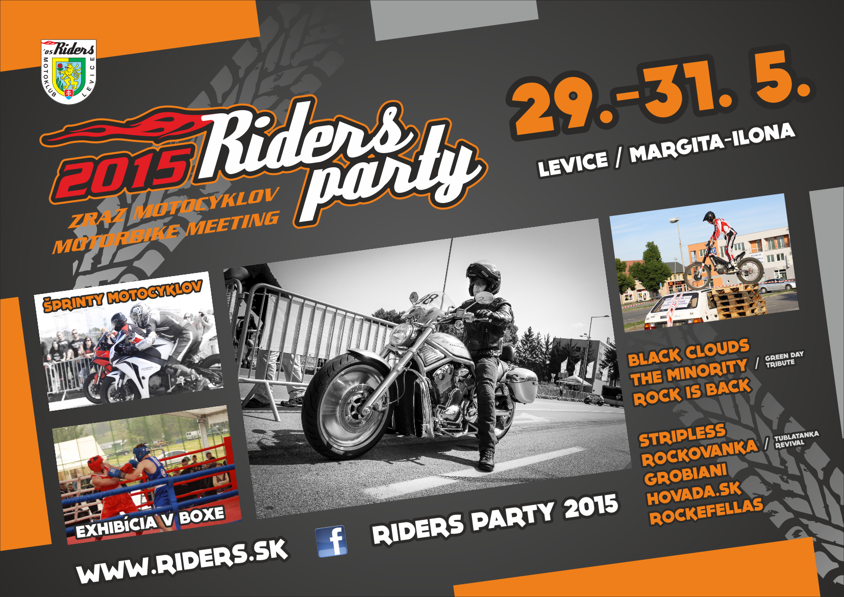 Už tento piatok (29.5.2015) sa predstavíme s našim programom na tohtoročnej Riders Party 2015 v Leviciach. Tešíme sa na všetkých motorových nadšencov, a priaznivcov rockovej a punkovej muziky. Kto ešte nemá žiadne plány na tento piatok, tak nech nakopne svoj stroj a príde na Margitu-Ilonu! Začíname o 22:00.
